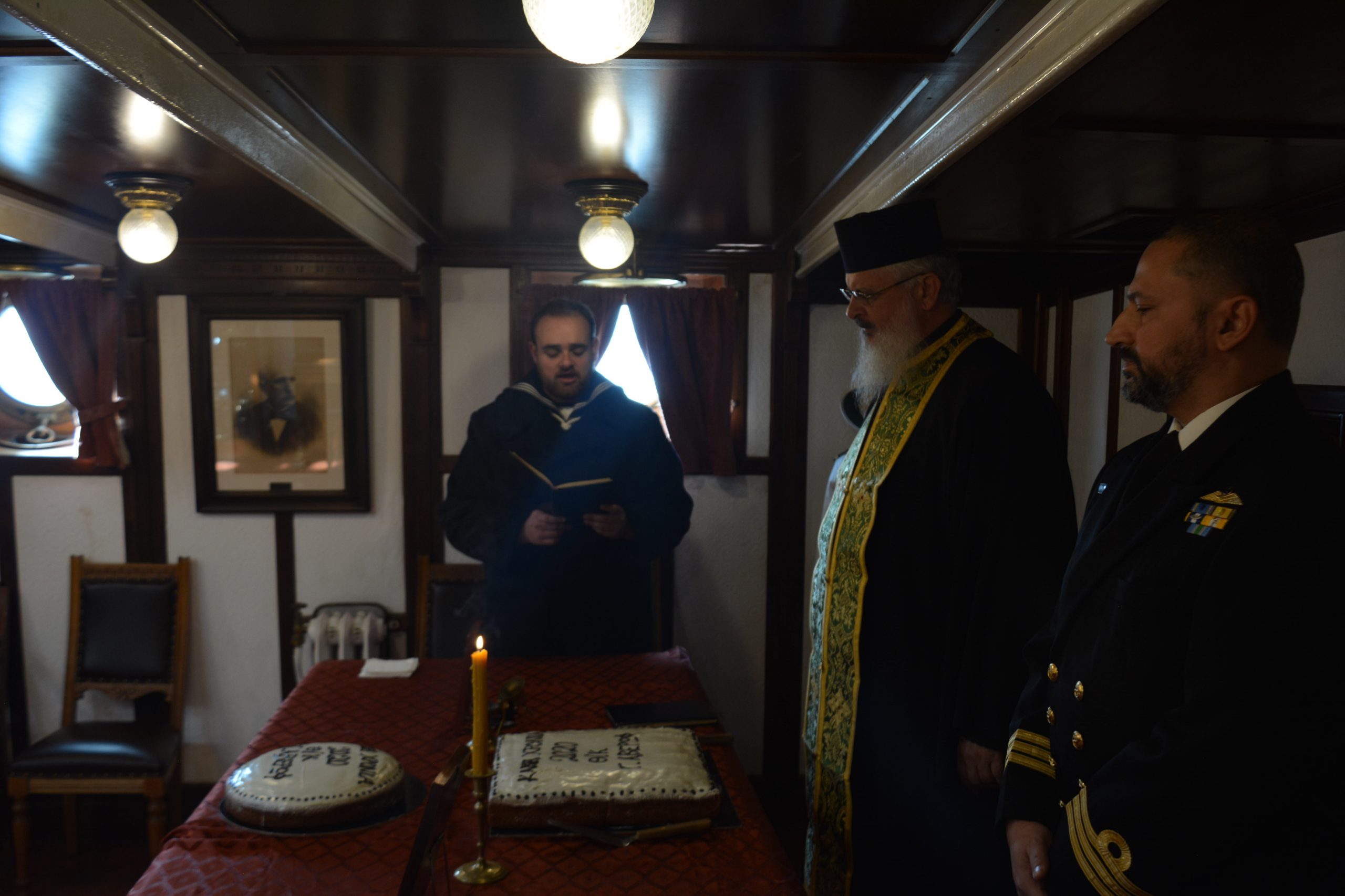 Την Δευτέρα 17 Φεβρουαρίου 2020 πραγματοποιήθηκε η κοπή της Πρωτοχρονιάτικης πίτας του Θ/Κ ”Γ.Αβέρωφ” και της Τριήρους ”Ολυμπιάς”. Προηγήθηκε δέηση από τον Ιερέα του Πολεμικού Ναυτικού, Συνταγματάρχη Στρατιωτικό Ιερέα, Αρχιμανδρίτη Ιουστίνο Δ. Μαρμαρινό.
